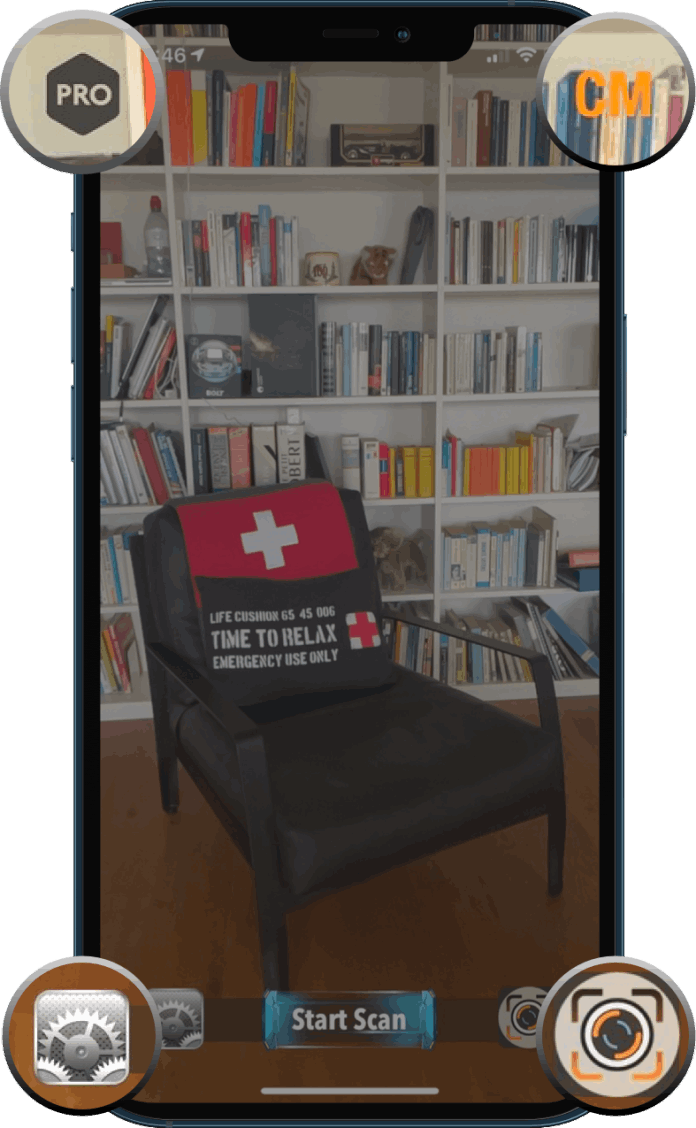Draw on the screen in the ‚world’ where you want to scan and choose the kind of scan (sphere, bubble)* then you can scan discrete objects or areas. Great for e.g. smaller distinct objects.
